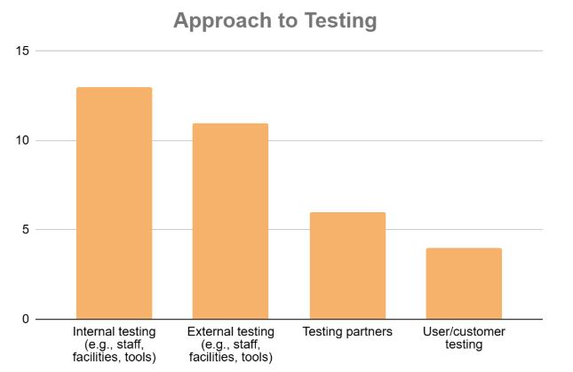 Graphic: Respondents utilized a range of methods to address their testing needs. The most common response was ‘Internal’, but this was only a plurality of respondents. The majority either utilized external testing capabilities or some form of partnership.