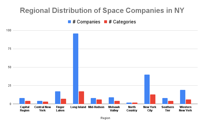 Every region in New York is home to at least two (2) different categories in the space economy, hosting active businesses and contributing to the economic and cultural fabric of their communities.